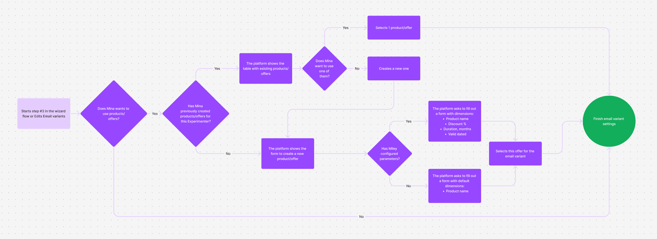 Instead of showing generic recommendations upfront, the system now waits until users input their campaign goal and then suggests relevant variant types and offer structures tailored to that specific objective.