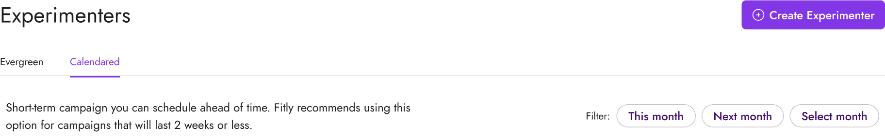 Will customers understand the Evergreen vs. Calendared split in the UI and know where to find a Calendared experimenter?